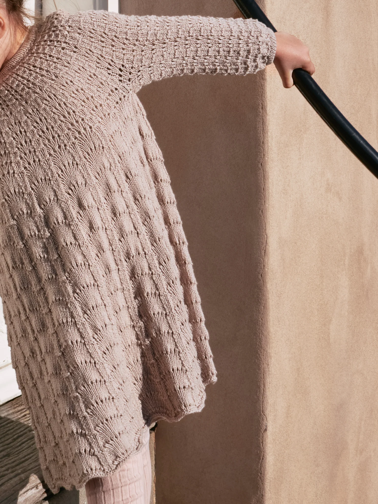 Yarn: Knitting for Olive Merino, Cotton Merino or Pure Silk (250 m [273 yd] / 50 g [1.8 oz]), fingering-weight yarn, 3 (3) // 4 (5, 6, 7) balls. Sample is in Merino, Mushroom Rose colorway